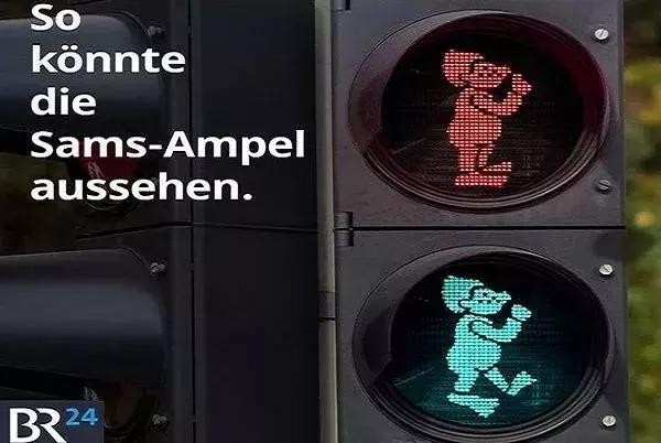 德國(guó)城市班貝克為了紀(jì)念德國(guó)少年兒童文學(xué)作家、插畫師、翻譯家以及班貝格生活編劇—— 保羅?馬爾,把紅綠燈小人形象更換成了保羅?馬爾作品中主人公 Sams 的形象。